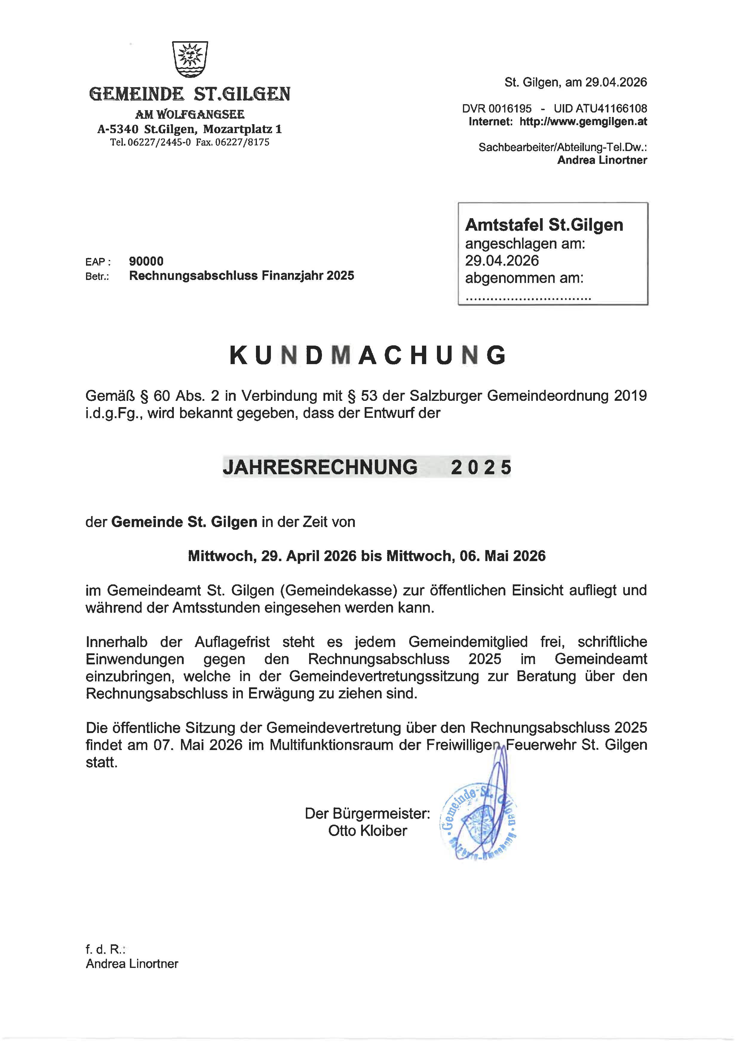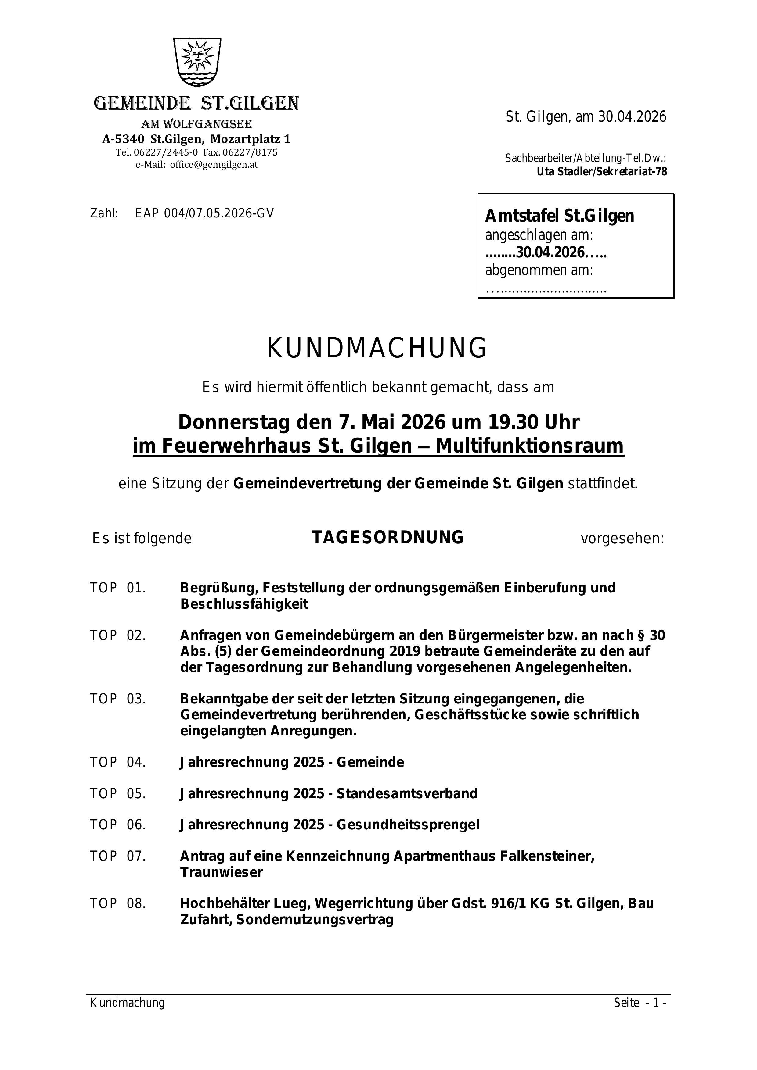 Gemeindevertretungssitzung am 07.05.2026, Kundmachung